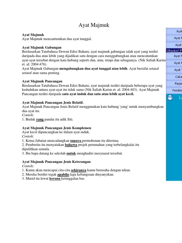 04042019 Pembentukan ayat majumuk pancangan keterangan Cara pembentukan ayat majmuk keterangan Ayat induk. JENIS-JENIS AYAT MAJMUK PANCANGAN KETERANGAN 1. 25112018 Ayat besar yang terhasil ialah ayat majmuk pancangan keterangan Nik Safiah Karim et al 2010514.