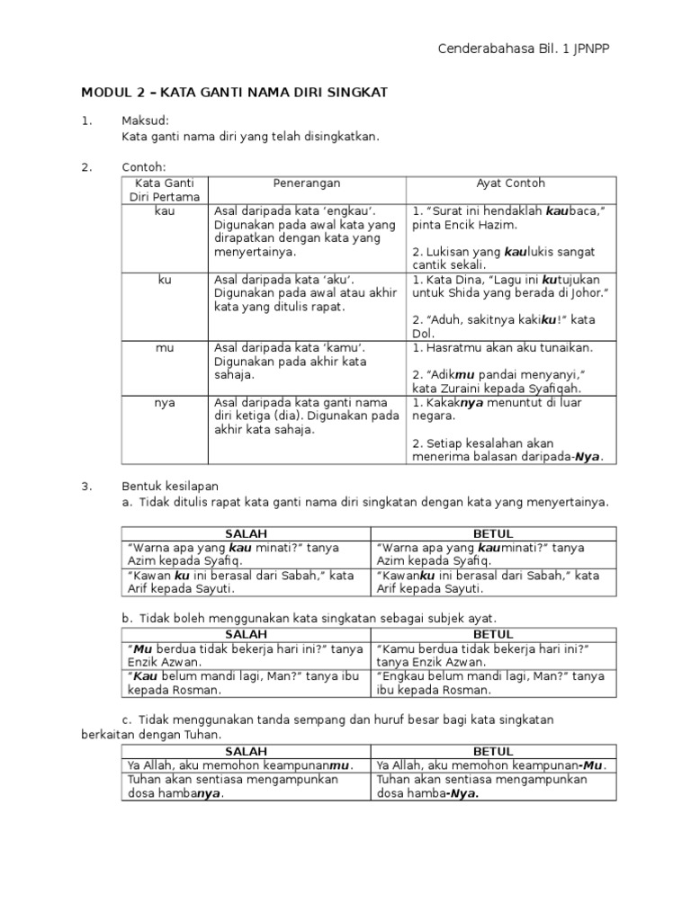 Bentuk Penggunaan Contoh ayat Tunggal Aku Sewaktu bercakap dengan rakan atau tuhan 1Aku berlindung pada-muTuhan. D kata ganti tempat. Modul 2 Kata Ganti Nama Diri Singkat.